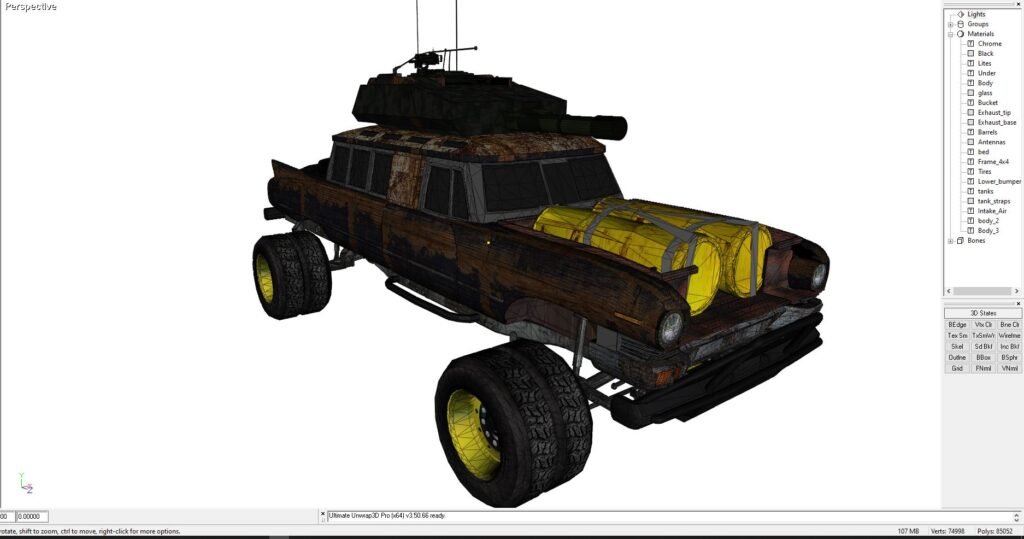 Other Art & Designs – 1962 Cadillac Battle Car – Wastelands game ready lo-poly 3D Model