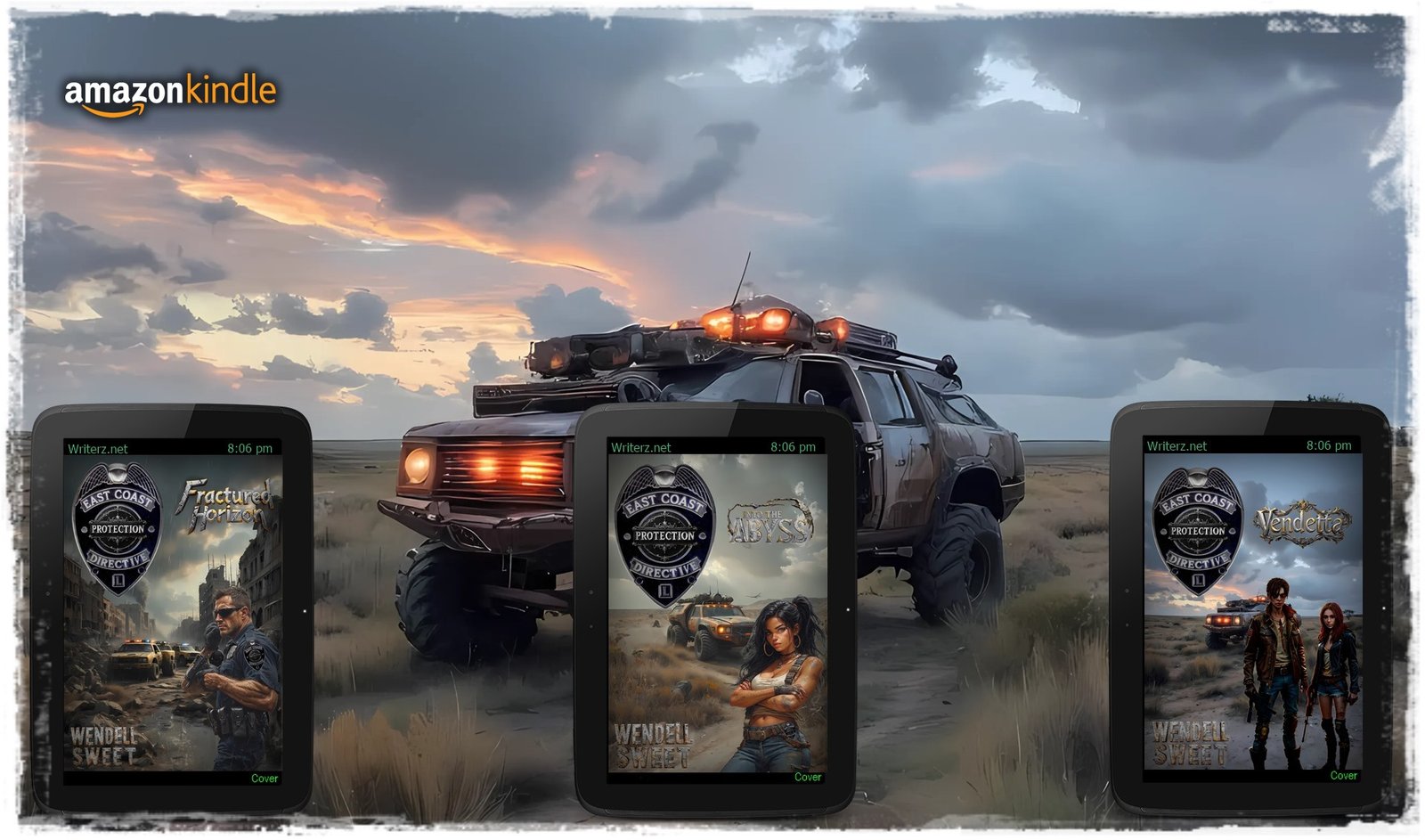 East Coast Protection Directive: Fractured Horizon by Wendell Sweet (Author) Format: Kindle Edition Maya Ramos, a miracle worker with grease-stained hands and eyes that saw the soul of an engine, kept these metal titans breathing, her workshop a sanctuary of organized chaos in the surrounding desolation. Alex Chen, a man who had once patrolled the gleaming, albeit corrupt, streets of NYPD, now navigated this shattered world with a heavy heart and an even heavier conscience. The rot he’d fought in the old world had merely spread, festering into a continent-wide plague of desperation. The landscape itself was a testament to the world’s unraveling. Once vibrant shores were now choked with plastic debris and the skeletal remains of ships, their hulls like beached leviathans. Inland, the arteries of commerce, the highways and byways, had become no-man’s-lands. They were arteries of peril, patrolled by opportunistic raiders and desperate scavengers. The air, thick with the perpetual haze of unchecked industry and the lingering dust of forgotten cataclysms, offered little respite. Each breath was a gamble, a taste of the world’s slow, suffocating demise. Resources were a constant source of conflict. Fuel was hoarded, water purified with desperate ingenuity, and food, when found, was a treasure to be defended with one’s life. Every settlement was a fortress, every journey a potential battlefield. #Dystopian #ApocalypticFiction #PostApocalyptic #Survival #ECPD #Series #Dystopian